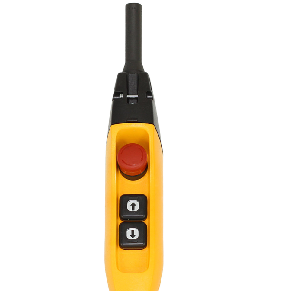 The SWDH100AA pendant features two buttons that enable precise and intuitive control of lifting and hoisting operations. The single-speed functionality ensures efficient and controlled movements, allowing operators to safely maneuver heavy loads with ease. The ergonomic design of the pendant ensures comfortable operation, reducing operator fatigue during prolonged use